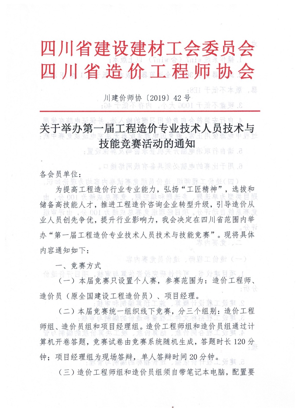 关于举办第一届工程造价专业技术人员技术与技能竞赛活动的通知